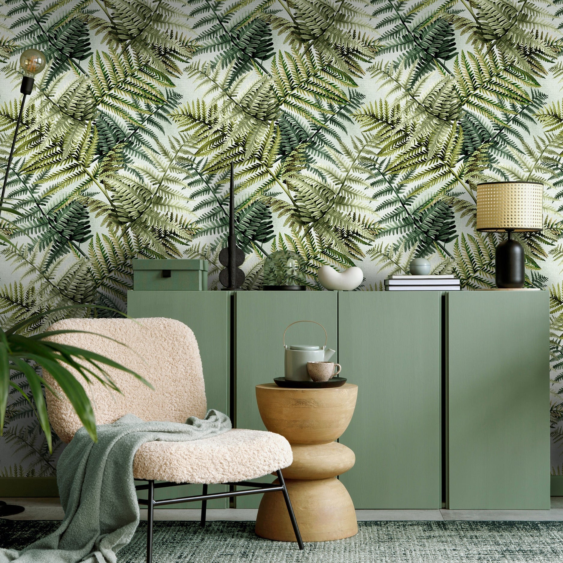 Upgrade your interiors with this beautiful Fern Wallpaper, showcasing the botanical structure of this foliage plant in rich green hues creates a calming wall covering that adds the beauty of nature to your home.