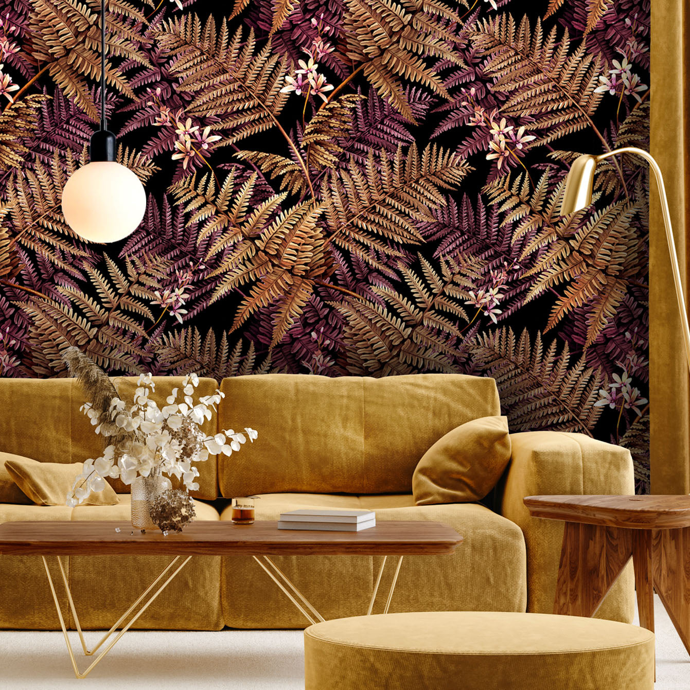 Upgrade your interiors with this beautiful Autumn Fern Wallpaper, showcasing the botanical structure of this foliage plant in rich hues creates a calming wall covering that adds the beauty of nature to your home.