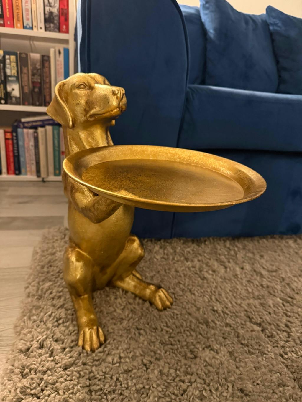 What’s not to love? A gold dog (labrador?) holding a drinks tray, it’s a little bit quirky and a lot fab. I’ve had my eye on this since Christmas and am not disappointed. Very quick delivery too, and great communication.