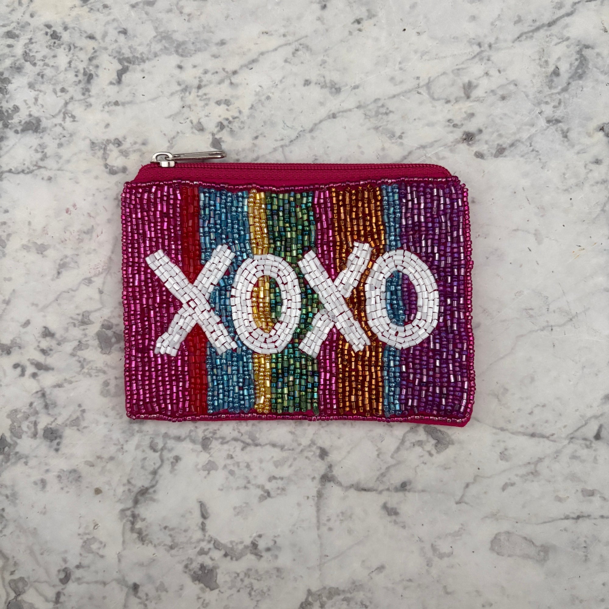Colourful, fun, and full of charm, the Bead Purse is a unique accessory that perfectly blends playful design with everyday practicality. Hand-beaded with cheerful XOXO motifs in crisp white beads set against vibrant striped colours, this eye-catching zipped pouch is bursting with personality.