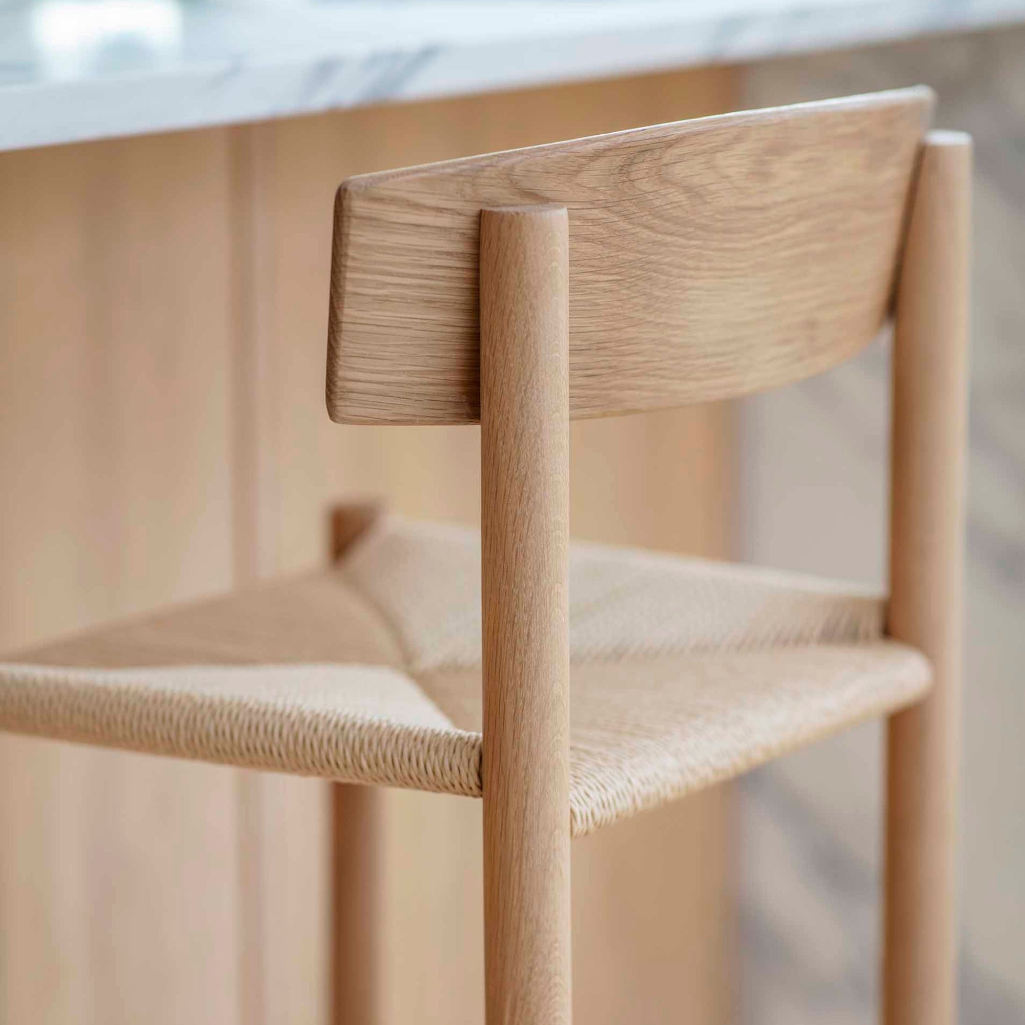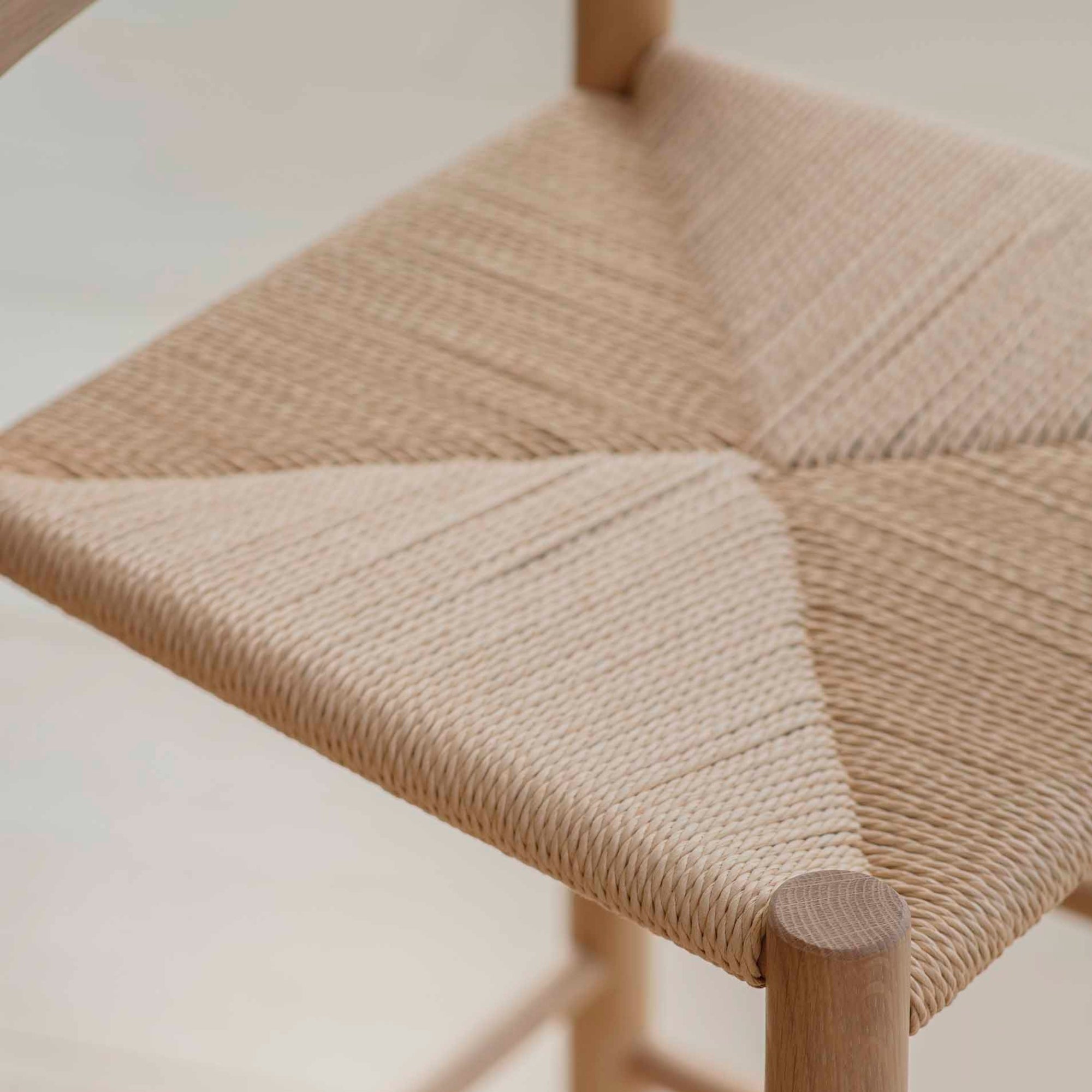 Expertly crafted from solid oak, this elegant stool showcases the natural beauty of wood grain while offering long-lasting durability. The seat features a woven paper cord finish, a classic Scandinavian touch that provides supportive comfort with a refined, artisanal look.