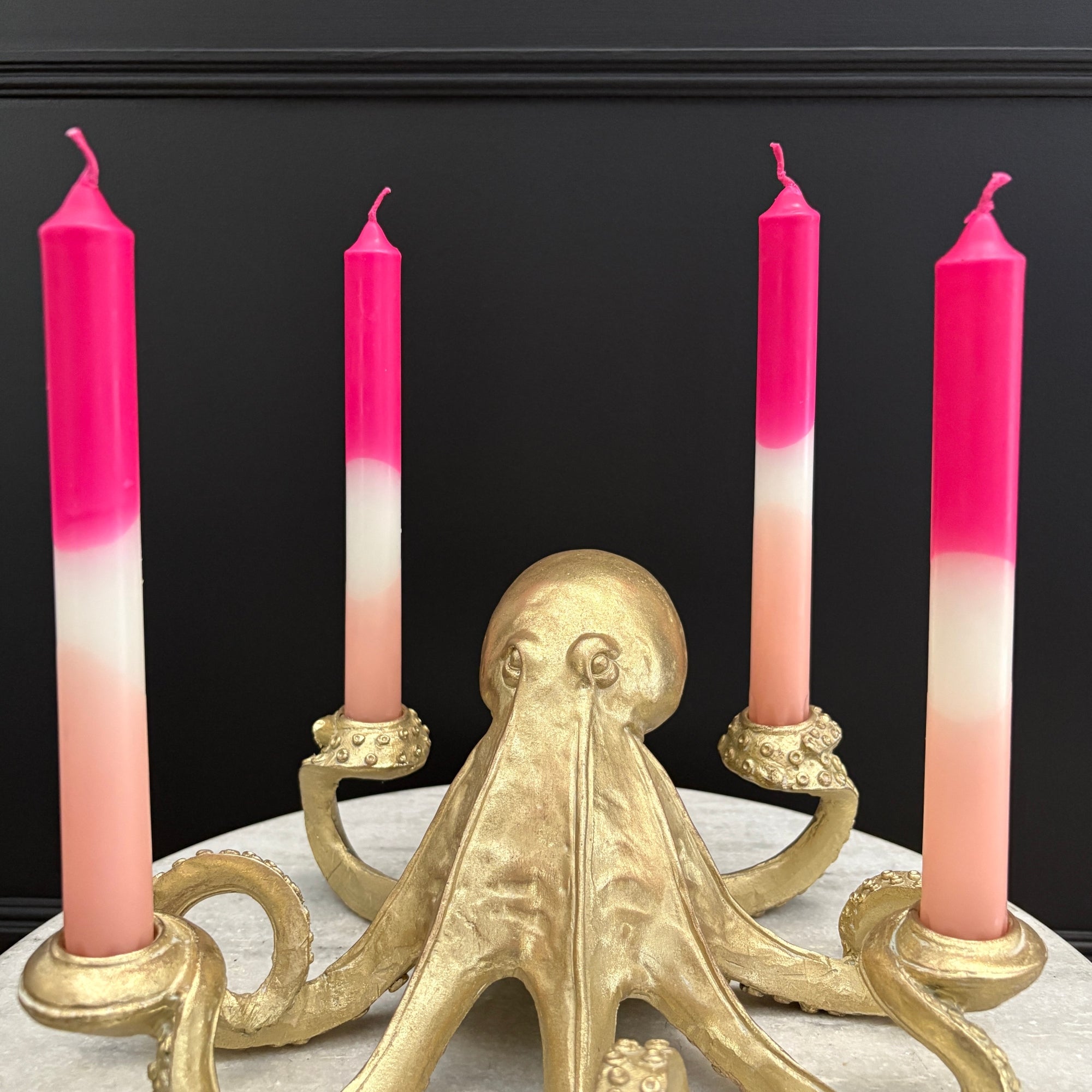 These Pink Dinner Candles are the ultimate mood makers, designed to infuse your space with both warmth and vibrant charm. Each tall candle in this set of four features a striking blend of soft pink, bold bright pink, and clean white, creating a visually captivating dip-dyed effect that’s both modern and playful.