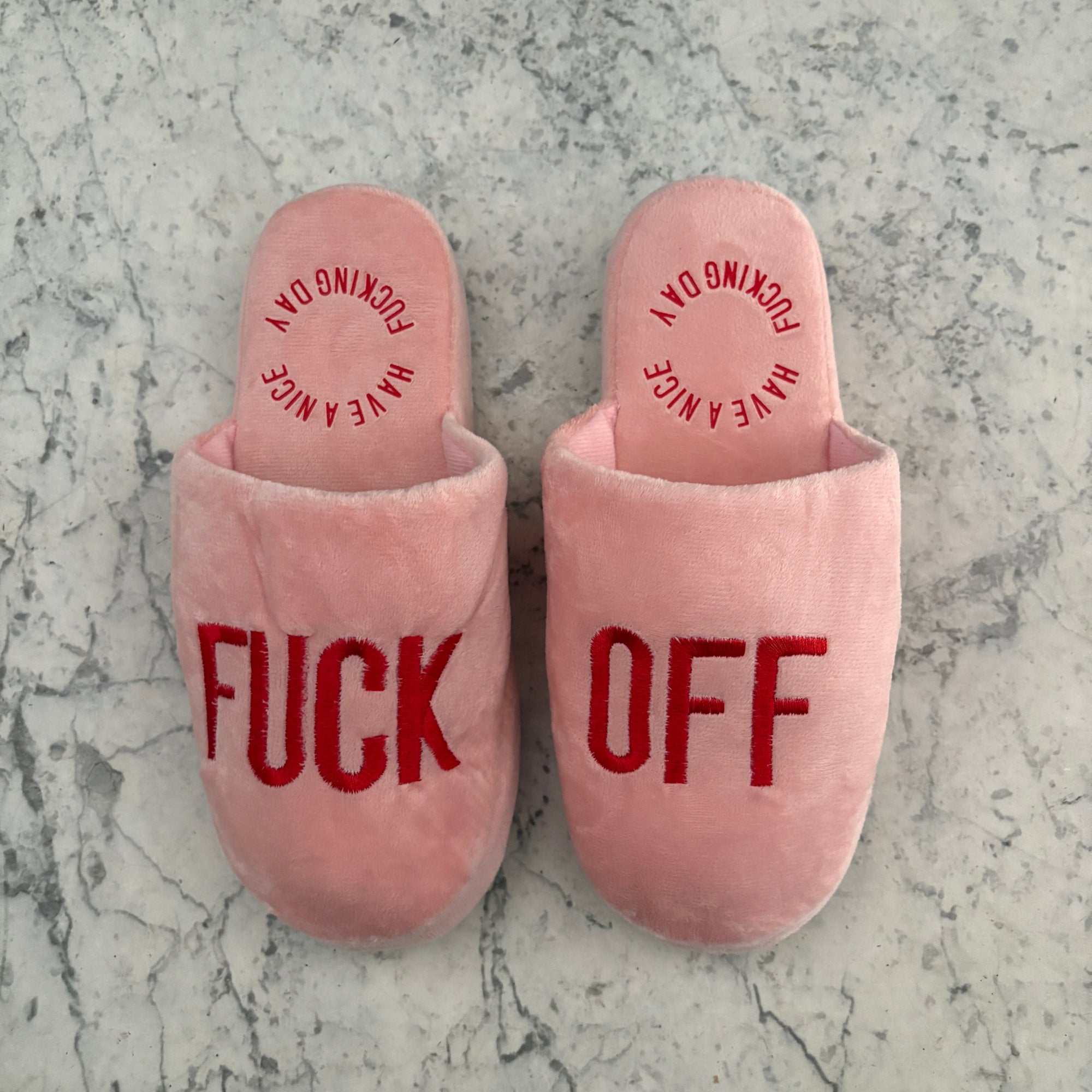 Emblazoned with “Fuck” on one slipper and “Off” on the other, these house slippers deliver a daring statement without you having to say a word—sure to spark smiles and giggles from anyone who spots them. Medium in size, they comfortably fit EU sizes 40–45, making them a fun option.