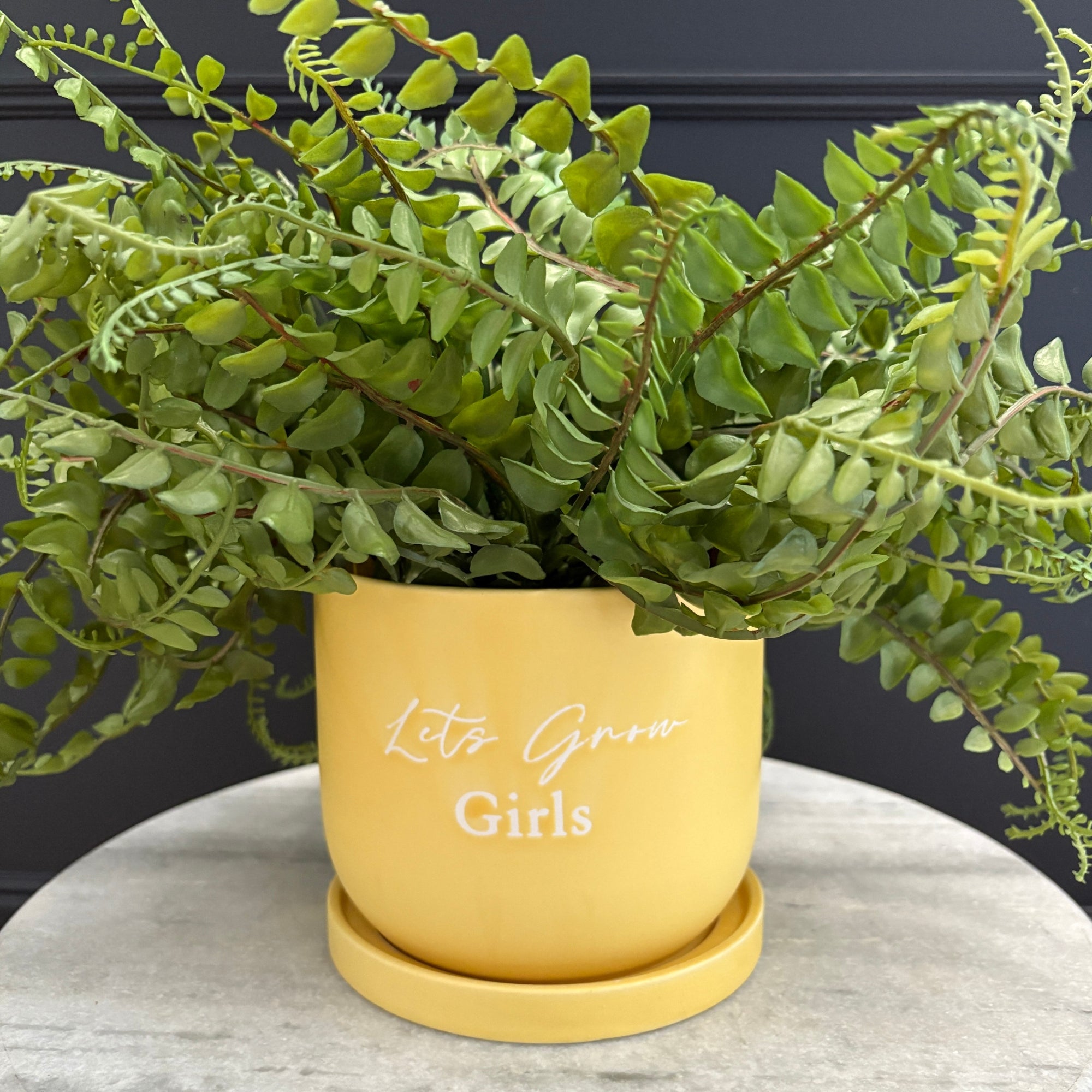 Add a playful pop of colour to your home with our Plant Pot Yellow, boldly featuring the empowering phrase ‘Let’s Grow Girls’ across the front. Bursting with personality, this charming pot is a celebration of growth, positivity, and a little bit of sass—making it a perfect gift for plant lovers and girl-power champions alike.