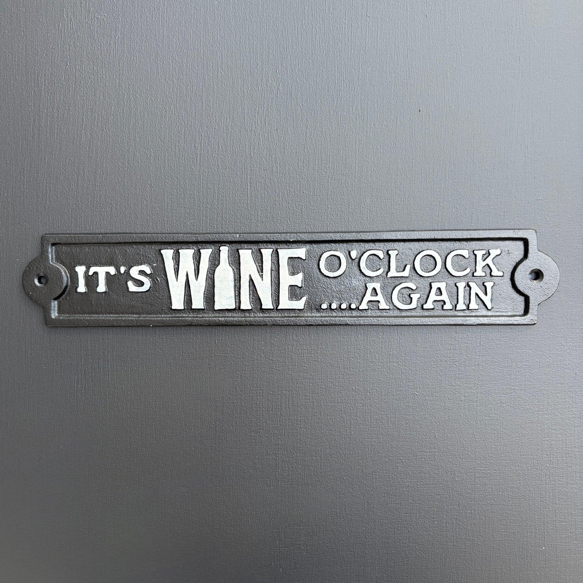 Bring a fun finishing touch to your space with the Bar Sign, a sturdy cast metal plaque designed to add both durability and character. Finished in black with bold white lettering, it cheekily reads: “IT’S WINE O’CLOCK… AGAIN” – the perfect reminder to unwind and enjoy a glass. This wall signs simple monochrome design ensures it fits effortlessly with a variety of décor styles, from modern kitchens to rustic home bars.