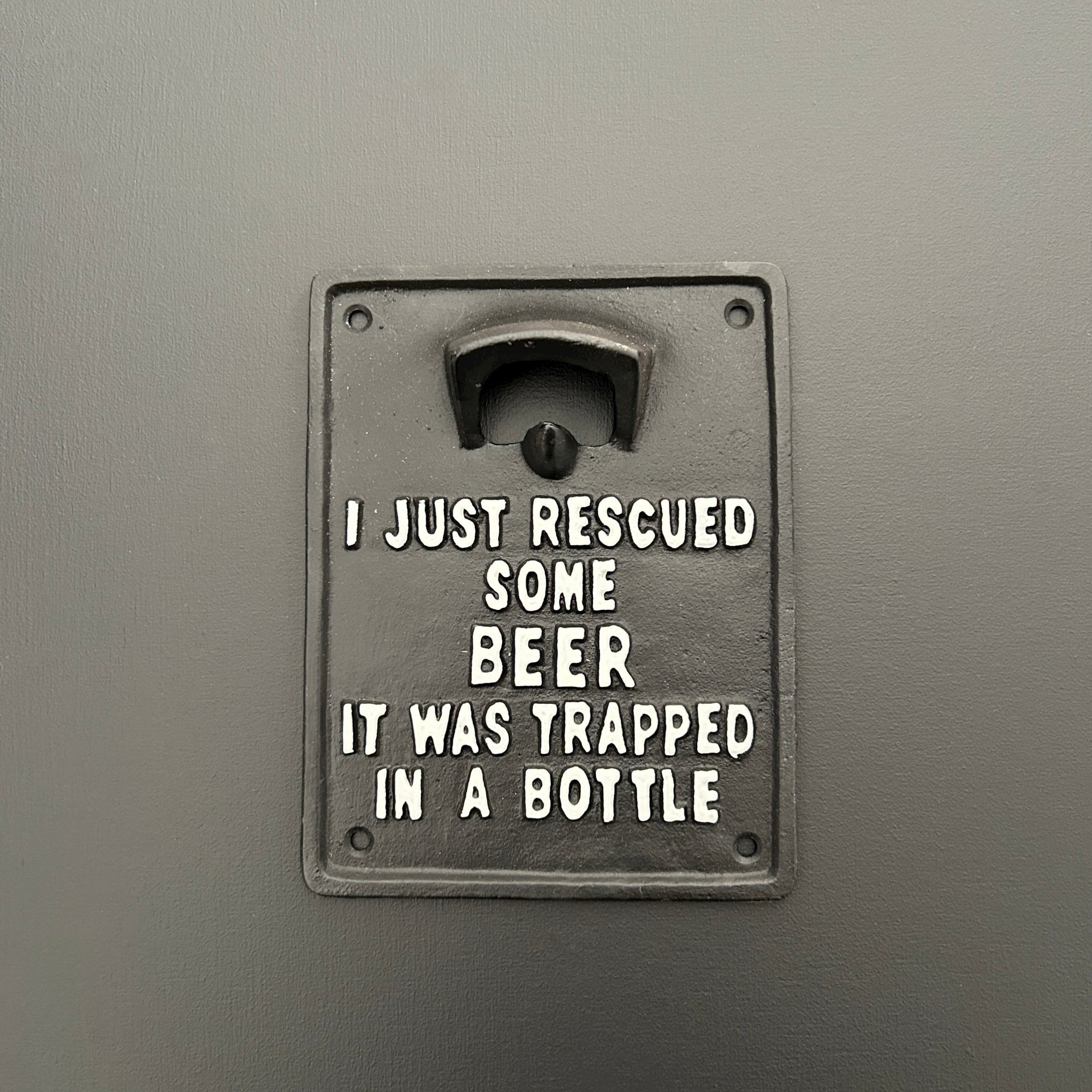 This humorous and quirky wall mount bottle opener is the perfect addition to your bar accessories providing an easy way to open your favourite tipple. A unique home decor in black and white this funny bottle opener promises to transform any space.