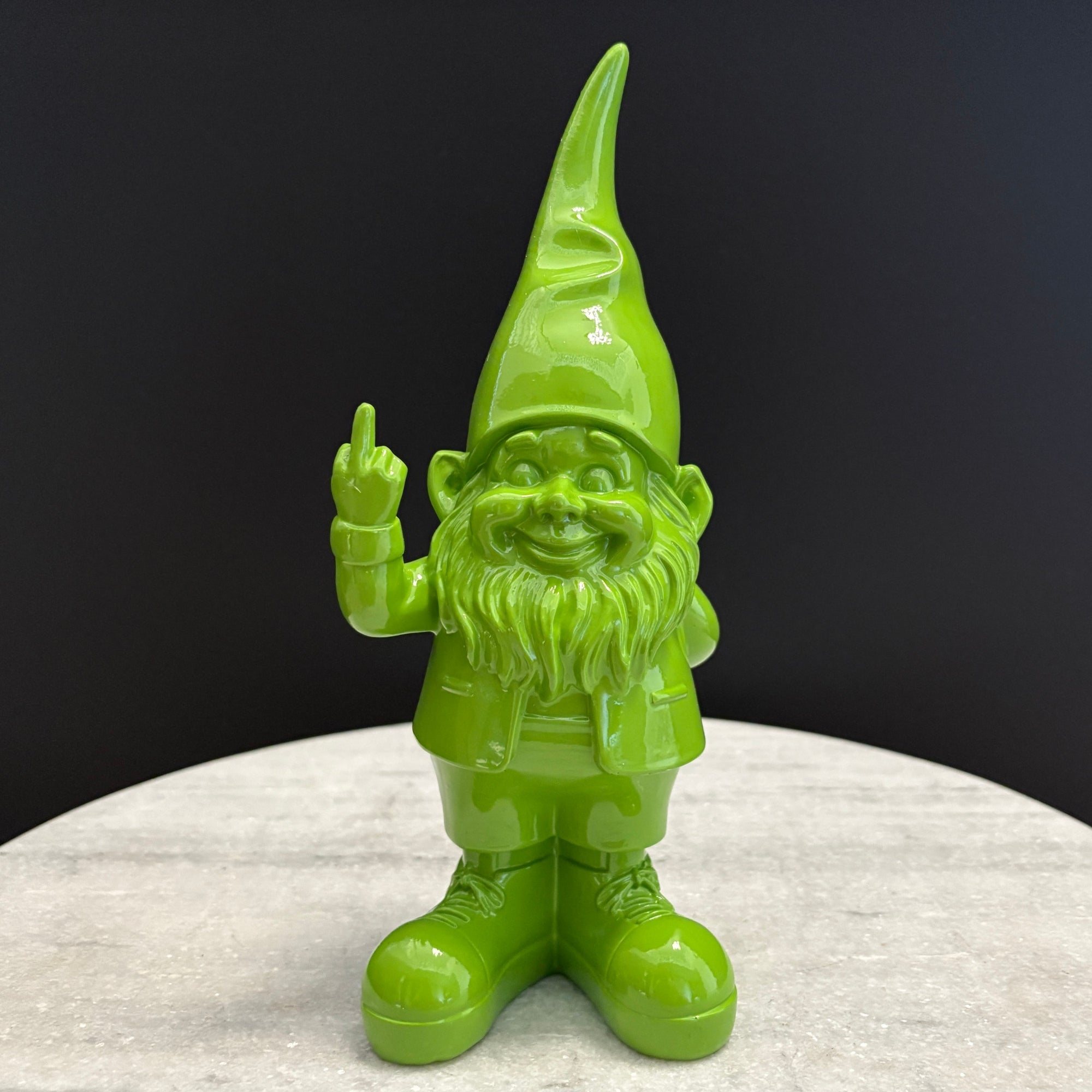 Make a daring statement with this mischievous gnome in a vibrant green hue, this Green Rude Gnome is designed to catch the eye and spark conversation. This cheeky ornament adds a playful twist to any home decor by boldly displaying a middle finger hand gesture, showcasing its unapologetically rebellious attitude.