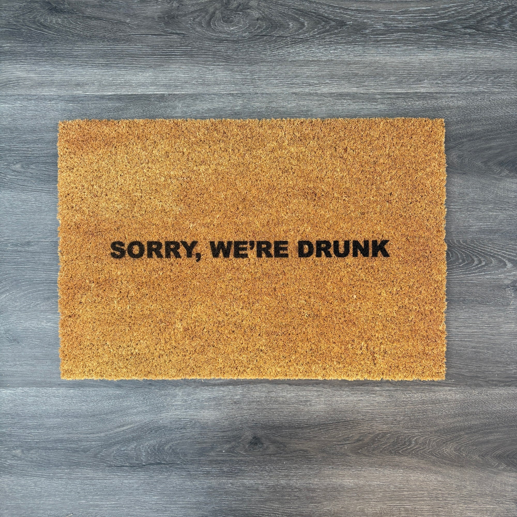 The Dirt Catcher Mat is a fun and cheeky addition to any home, perfect for those who love to entertain. This eye catching doormat effectively traps dirt and debris while offering a durable, textured surface. The bold black lettering on this fun doormat humorously states, "Sorry, We're Drunk," making it a lighthearted welcome for guests.