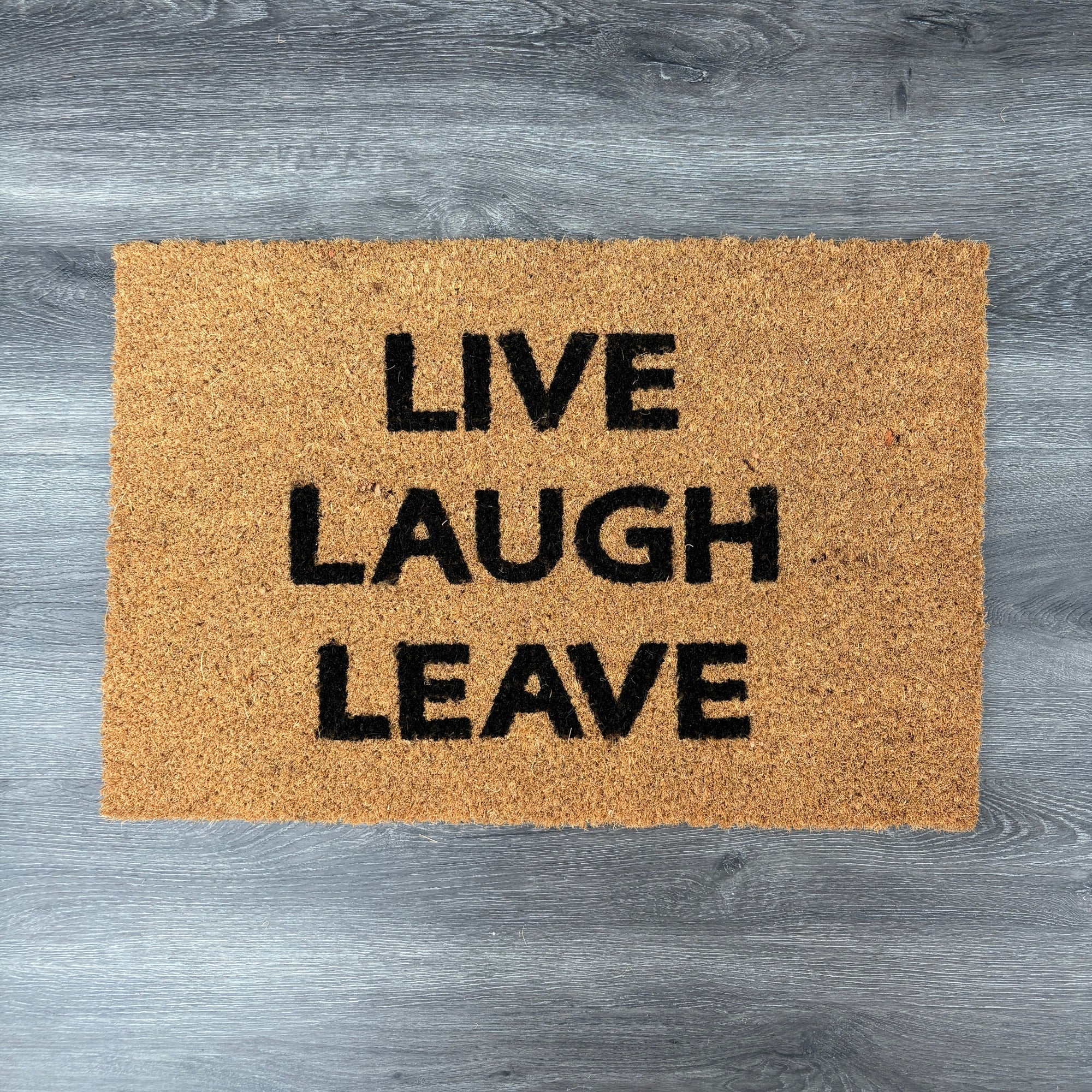 Fun and eye-catching, the Leave Doormat is a witty twist on a home essential, perfect for those who enjoy home decor with personality. Featuring the bold phrase “LIVE LAUGH LEAVE” in striking black text, this coir doormat makes an instant statement while giving guests a playful hint of your sense of humour.