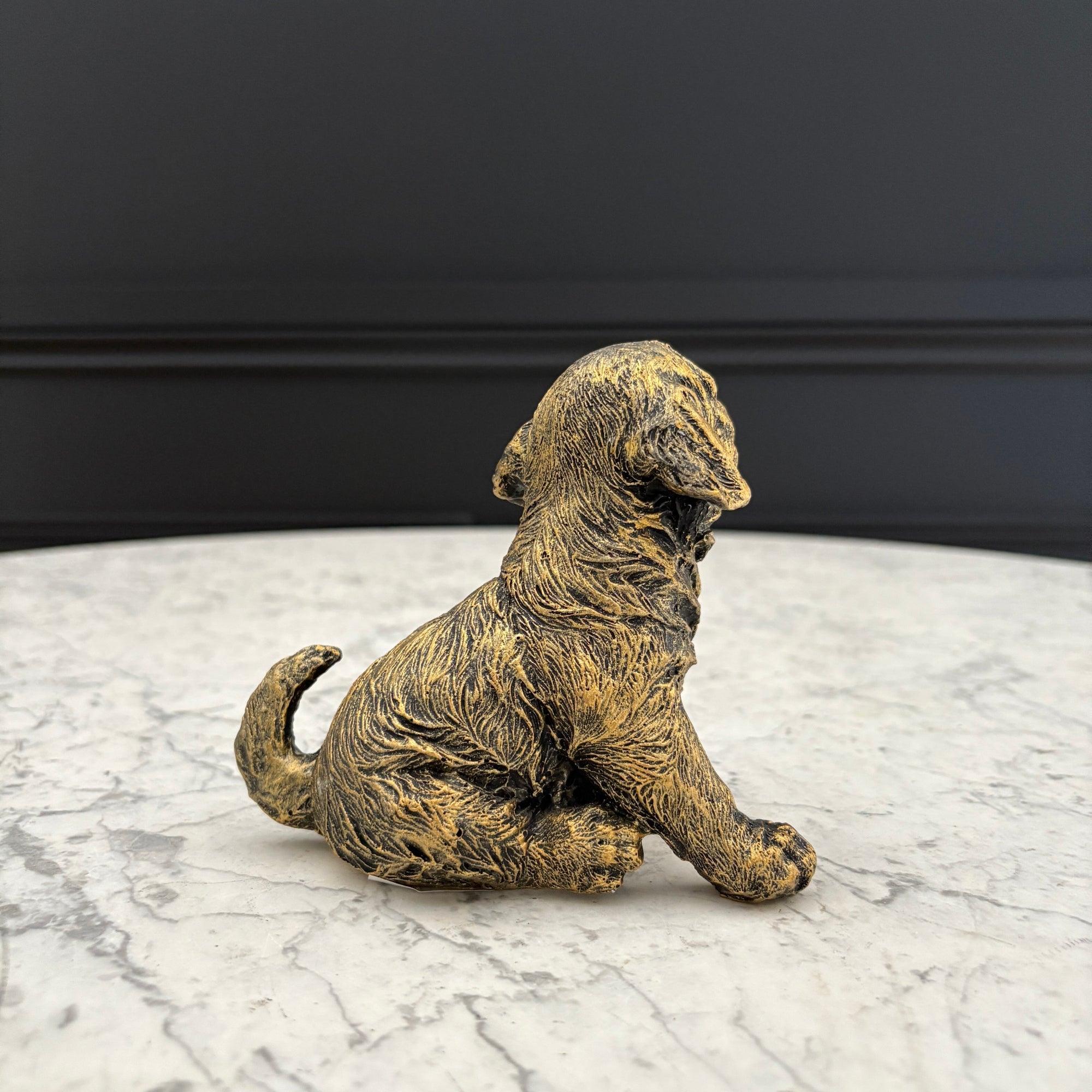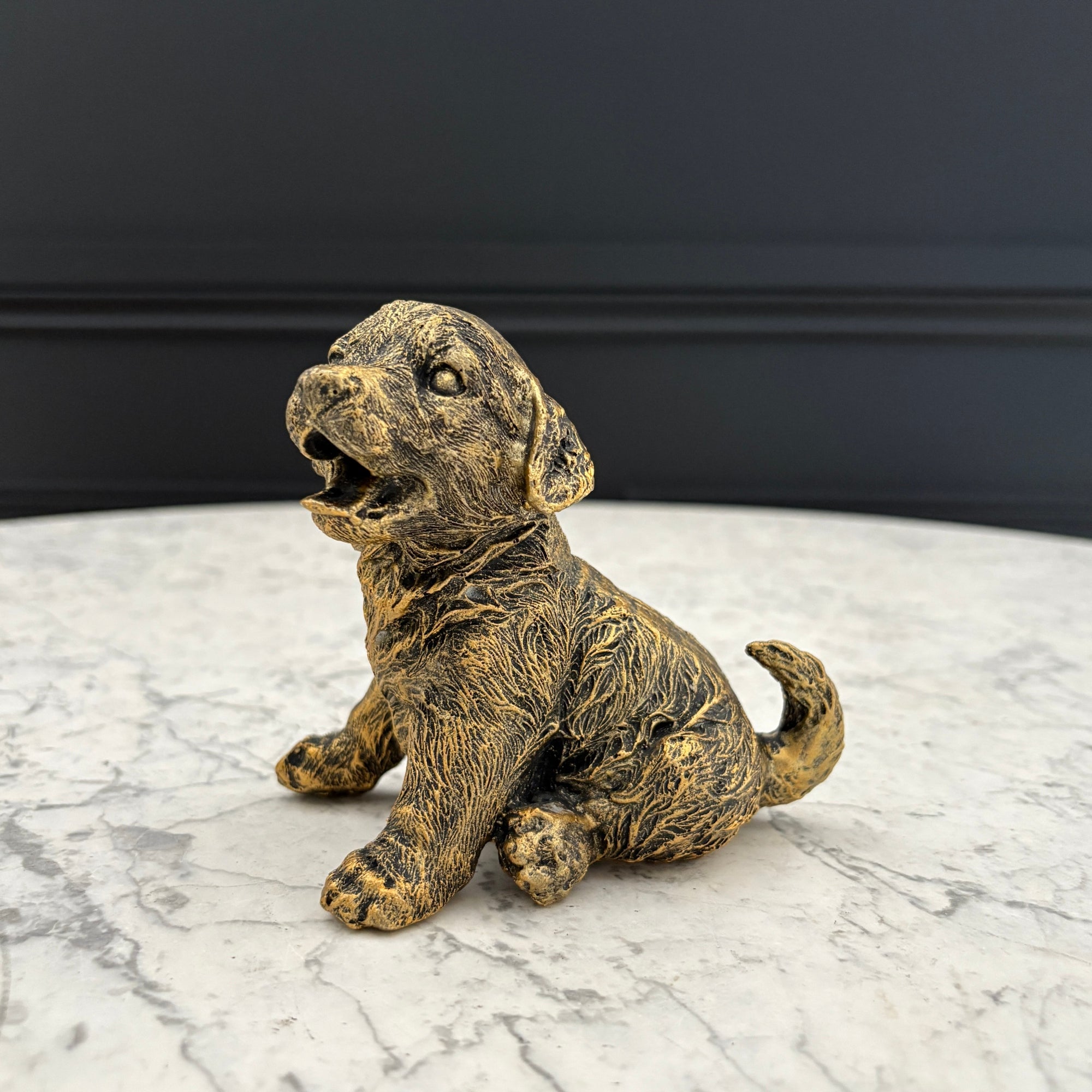 This ornament is finished in aged gold tone to complement a wide variety of interior styles—from classic and traditional to contemporary and eclectic. This pups seated posture and jolly facial expression make it irresistibly lovable, radiating a sense of playfulness and calm wherever it’s placed.