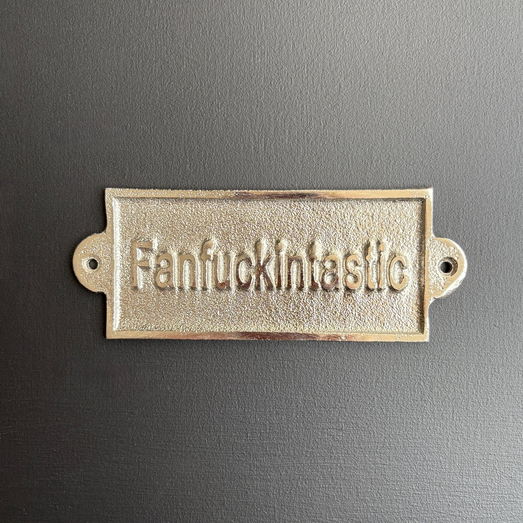 Add a cheeky twist to your décor with this bold and humorous Silver Fun Sign featuring the unapologetically playful phrase "Fanfuckintastic" in embossed lettering. Crafted from sturdy metal and finished in silver, this wall sign is made for those who aren’t afraid to express a little attitude—and a lot of personality.