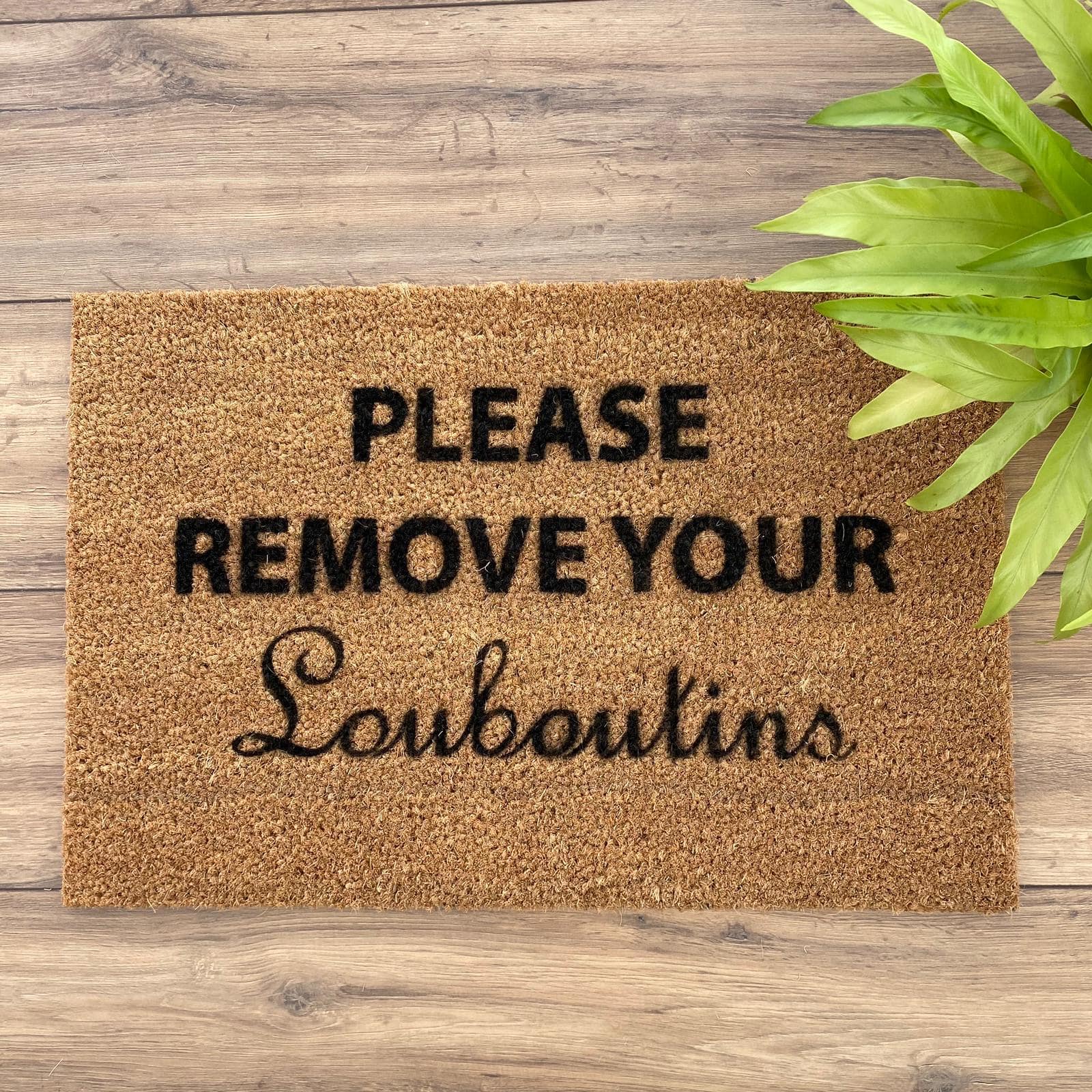 As the first thing seen when anyone enters your home an indoor Please Remove Your Louboutins Doormat is a fabulous statement piece that welcomes your guests in style.