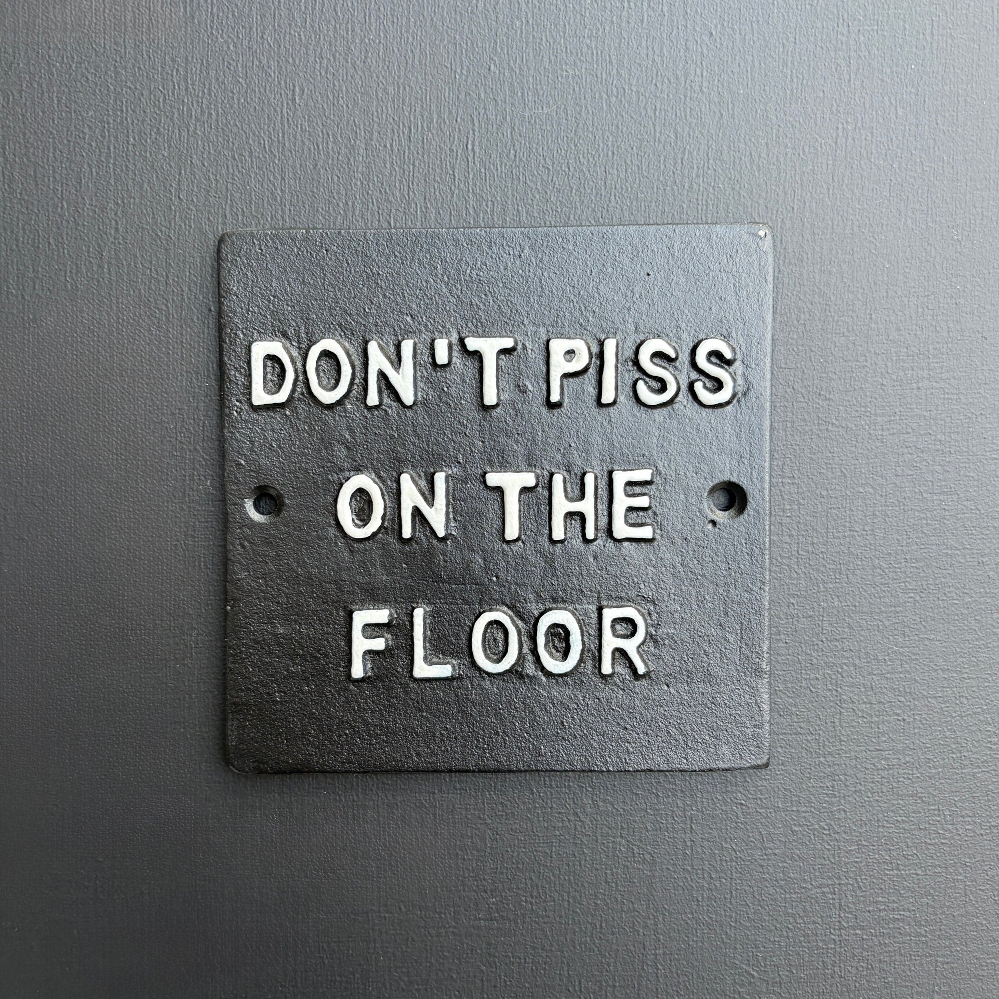 Eye-catching and unapologetically bold, the Floor Sign is a humorous home decor piece designed to get noticed. Made from sturdy cast metal, this funny sign is built to last while bringing a touch of cheeky personality to your space. Finished in black with crisp white lettering, it dares to declare “DON’T PISS ON THE FLOOR”.