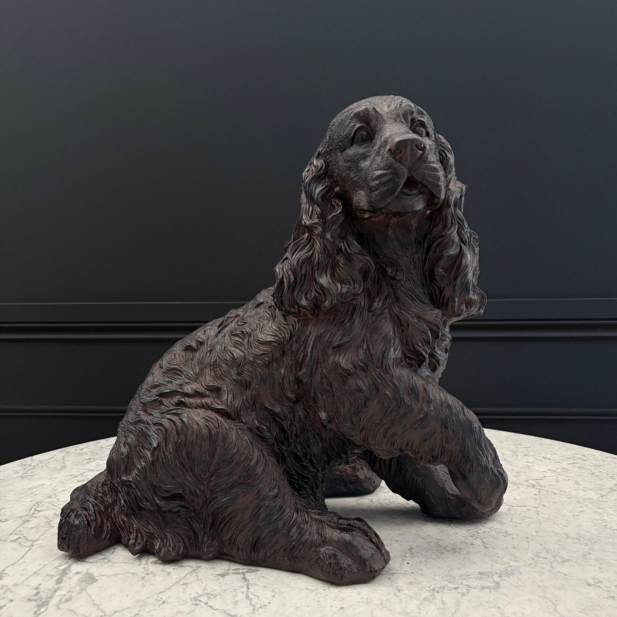Endearing and cute this Spaniel Ornament is a charming and lifelike decorative accessory, perfect for both indoor display or as a garden ornament. Expertly crafted with fine attention to detail, this adorable dog statue captures the endearing expression and soft, wavy fur of a seated cocker spaniel, giving it an irresistibly appeal.